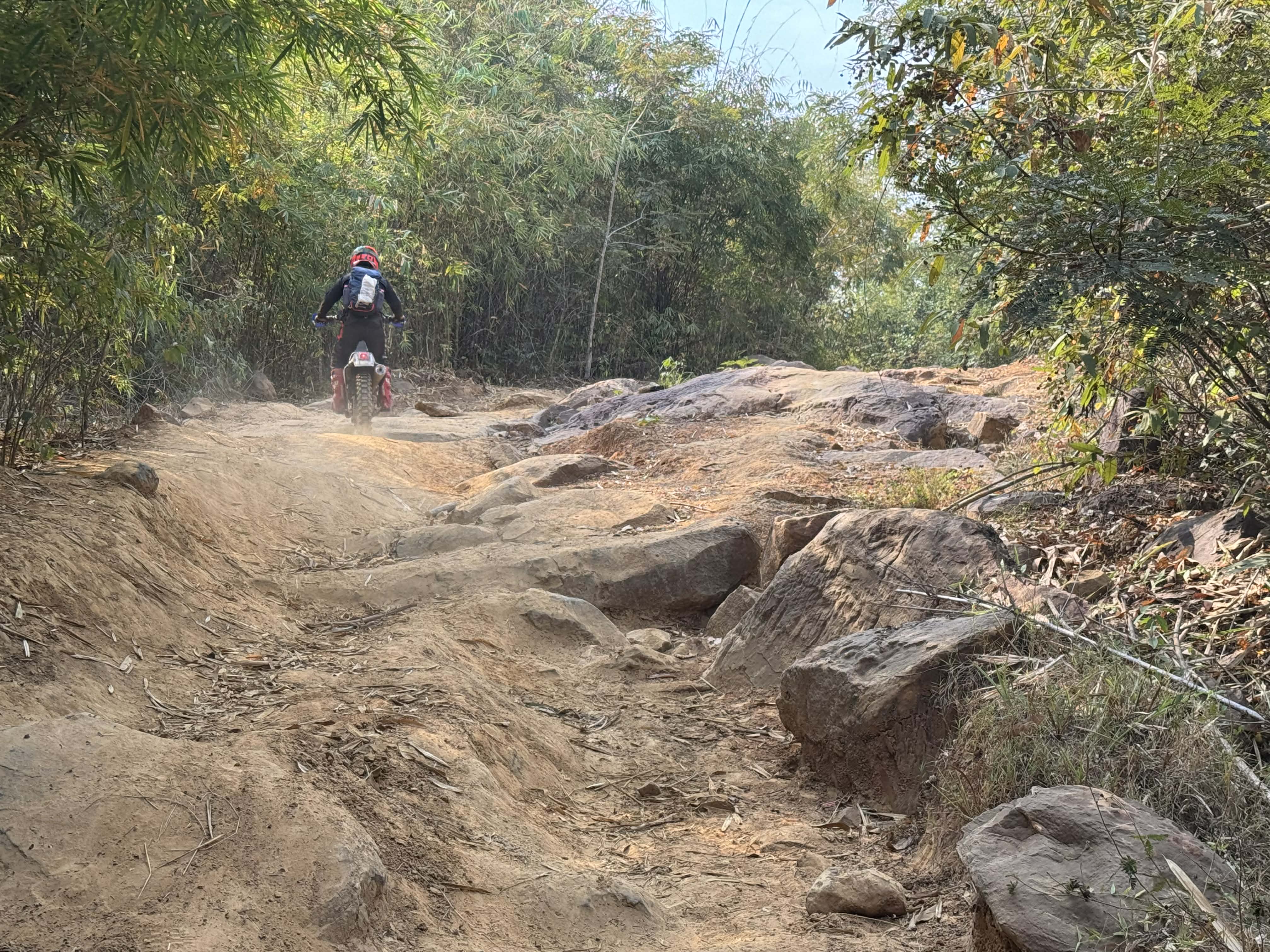 8:20 AM: Meeting in Sen Monorom. We travel south to our Elephant Sanctuary Forest (12 km / 20 min). The drive offers scenic views of the community forest which our project helps to protect.